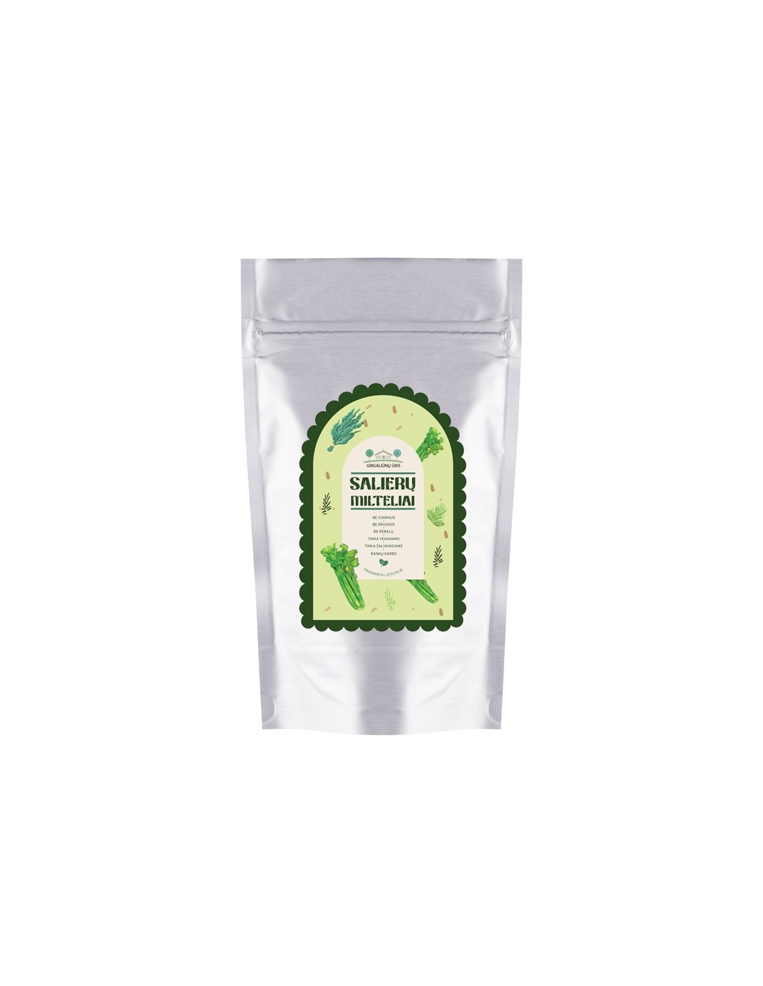 Salierų milteliai funkcinis maisto priedas, kurio pagalba galite palepinti savo organizmą ypač naudingomis medžiagomis. Salieras mažina uždegimą organizme, palaiko virškinimą, puikus antioksidantų šaltinis bei turi mažai kolorijų. Kad salierų milteliai suteiktų kuo daugiau naudos organizmui, rekomenduojame jais pagardinti jau pagamintą ir šiek tiek pravėsusį patiekalą arba naudotijį su šaltaisiais patiekalais. Salierų milteliai gaminami iš šviežių salierų, kurie džiovinami žemoje iki 45oC, o vėliau sumalami į miltus.